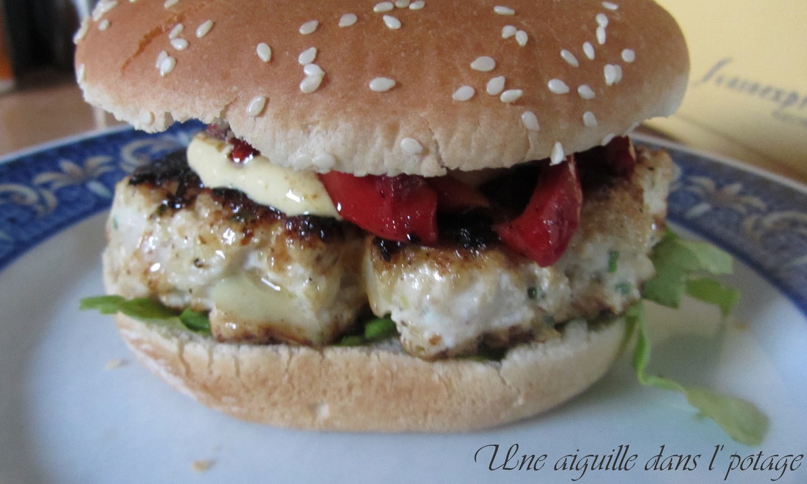 J’ai augmenté proportionnellement la quantité par rapport à la recette pour obtenir 5 gros burgers à partir de 650 g de poulet, ils étaient très copieux, et nous avons été bien rassasiés avec un seul burger.