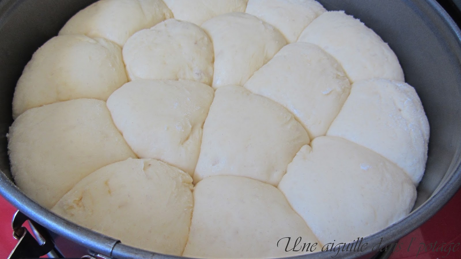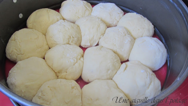 Moule de 24 cm, pâtons de 50 g avant levée… ils sont trop proches les uns des autres! 40 g auraient été suffisants |