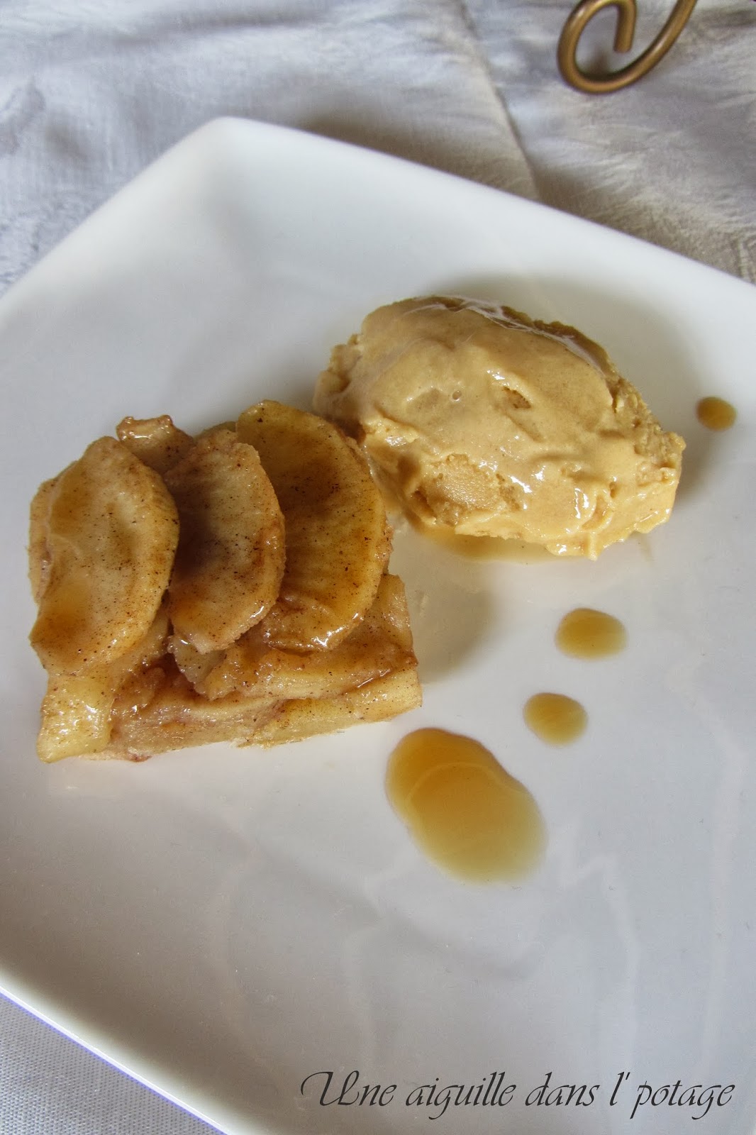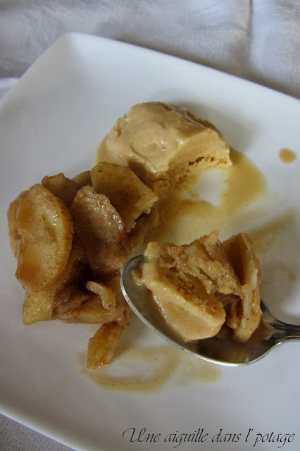 Hum, que cette glace maison me tente! Et avec des pommes au beurre salé, impossible de résister!