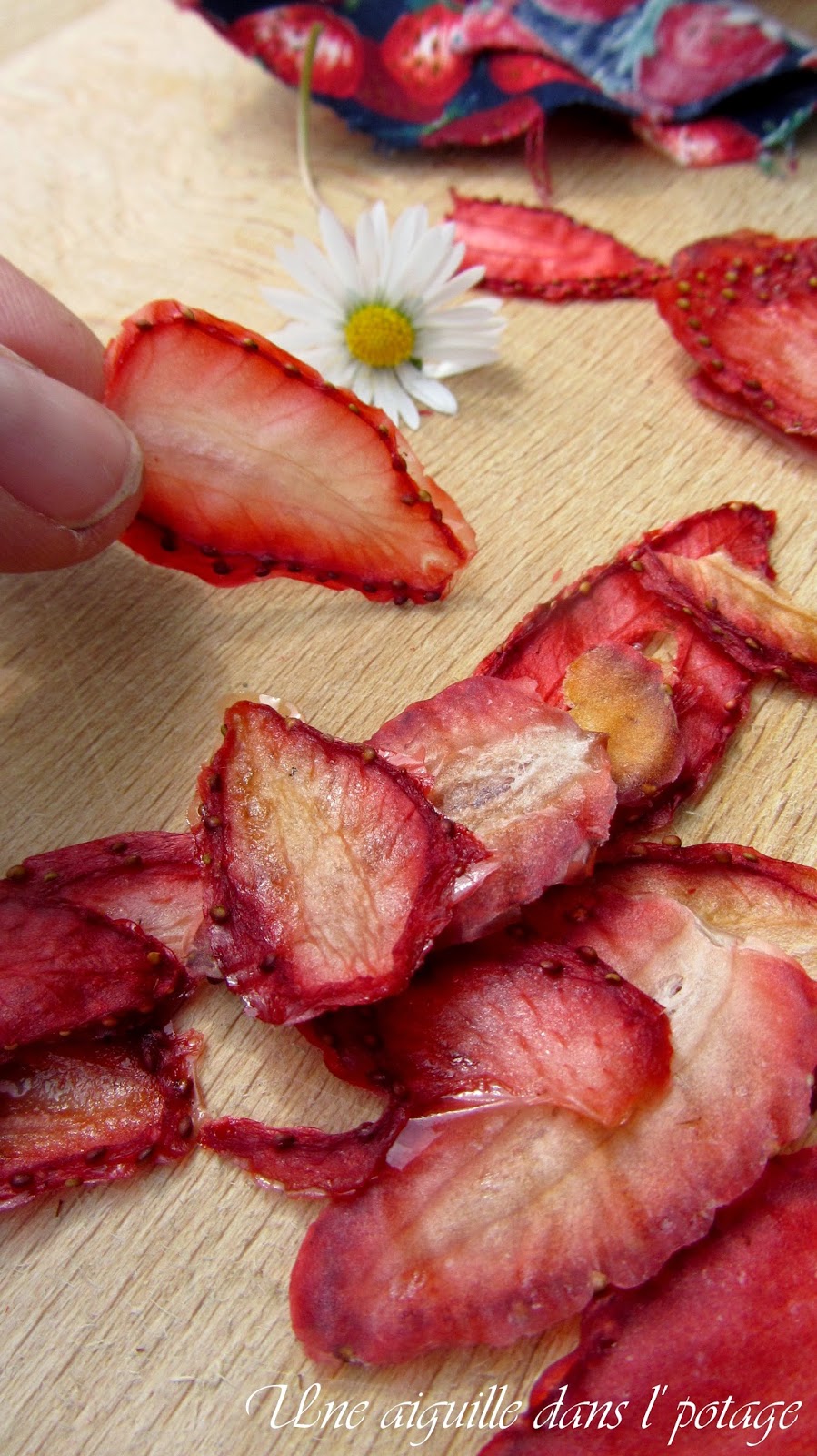 je connaissais les versions salées de chips avec différents légumes, mais je trouve que c'est une idée géniale avec des fraises. En, plus, tellement facile. Merci pour le partage.