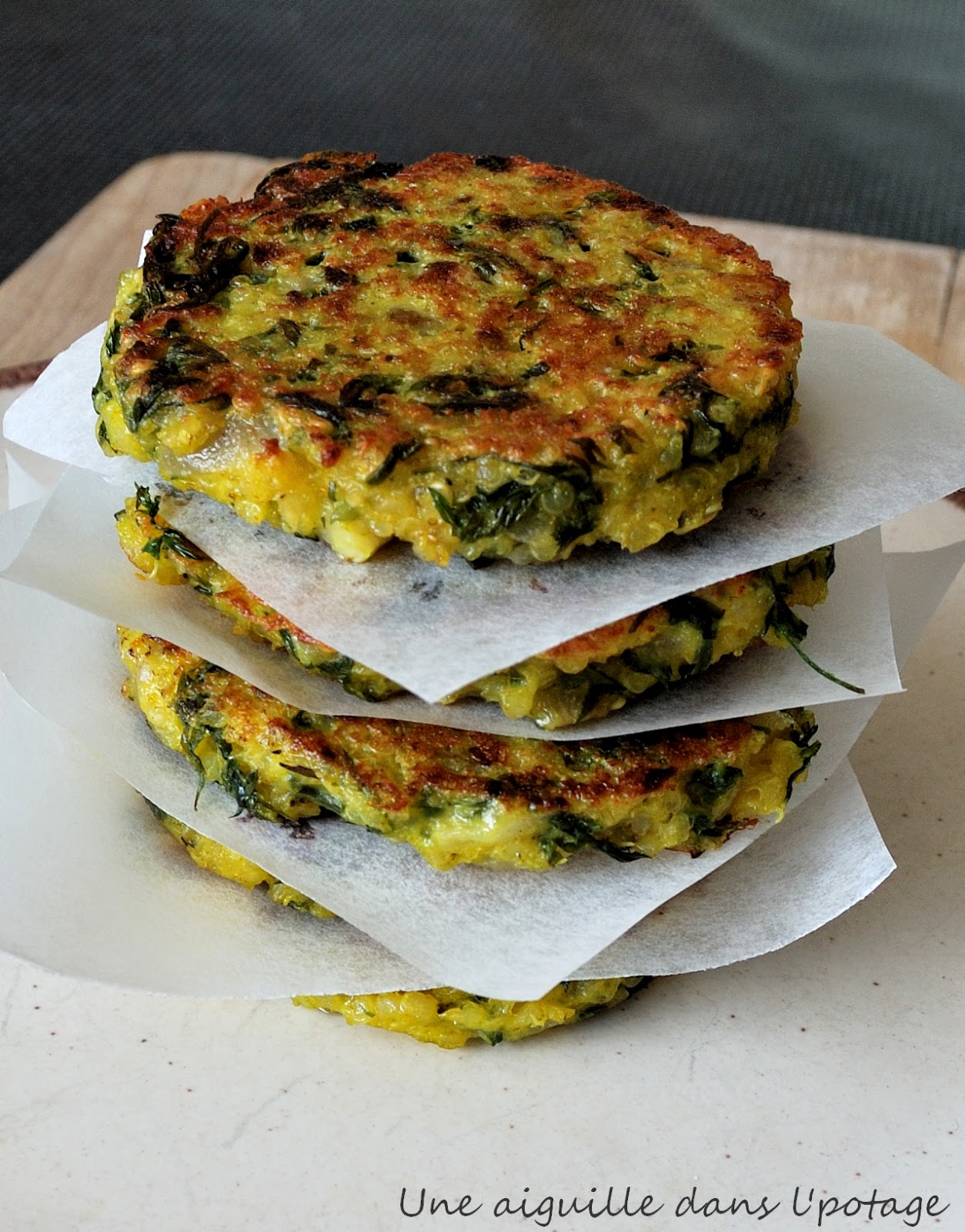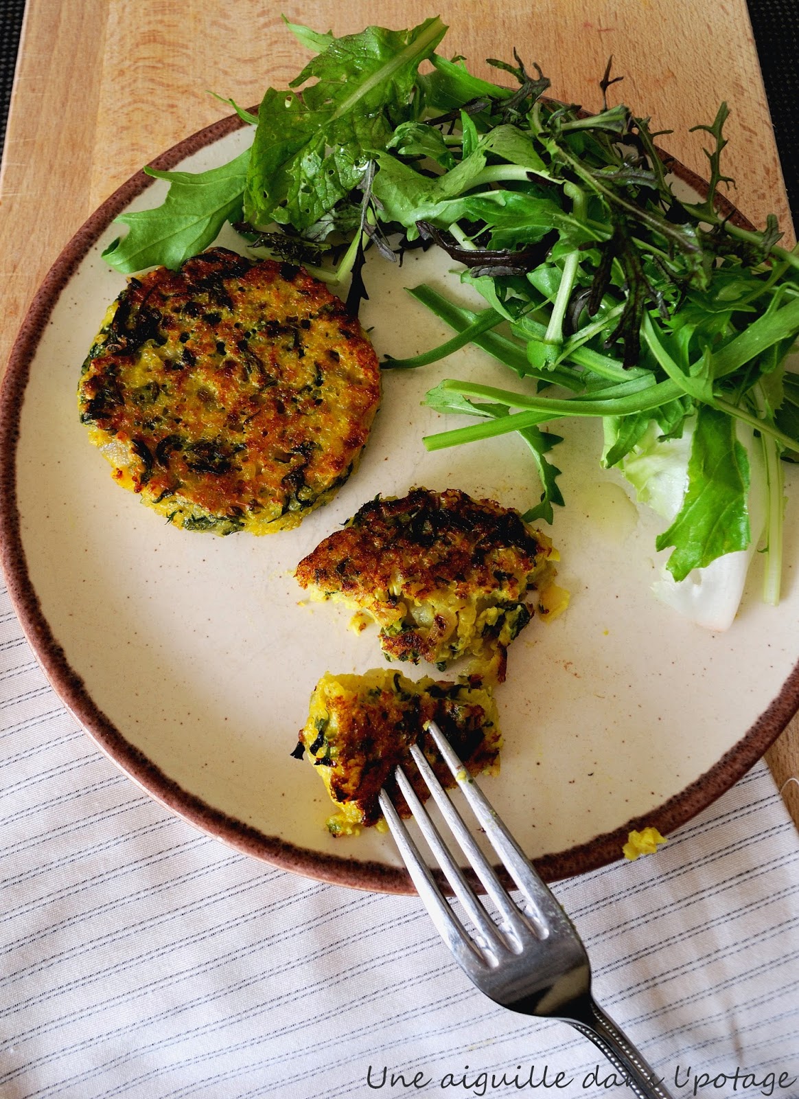 jolies galettes bien tentantes… Et en plus une idée pour utiliser les fanes de carottes, on ne jette rien et en plus on fait des économies, super !!!
