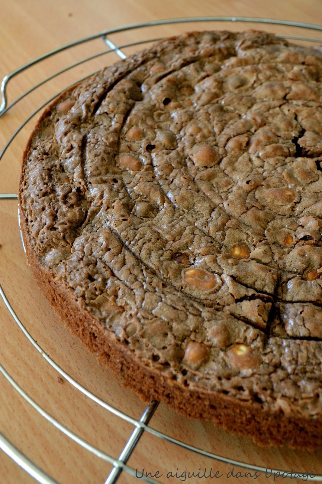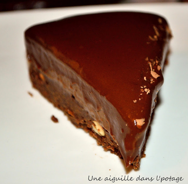 Je me suis enfin décidée à réaliser cette petite merveille, mais avec des noisettes pour le coup , bien que Valérie précise qu’il est vraiment plus savoureux avec des noix de pécan ( ce sera pour la prochaine fois !) Il n’y a aucune difficulté pour réaliser ce gâteau , surtout lorsqu’on suit les pas à pas du blog C’est ma fournée » » . Il est cependant préférable d’avoir un thermomètre (surtout pour le glaçage ) et un cercle à entremet extensible ( que je n’ai pas ! ). Pour le moule, j’ai fait cuire mon brownie dans un moule à charnière de 22 cm et je l’ai recoupé à la taille de mon cercle de 20 cm car la pâte se rétracte un peu après cuisson .
