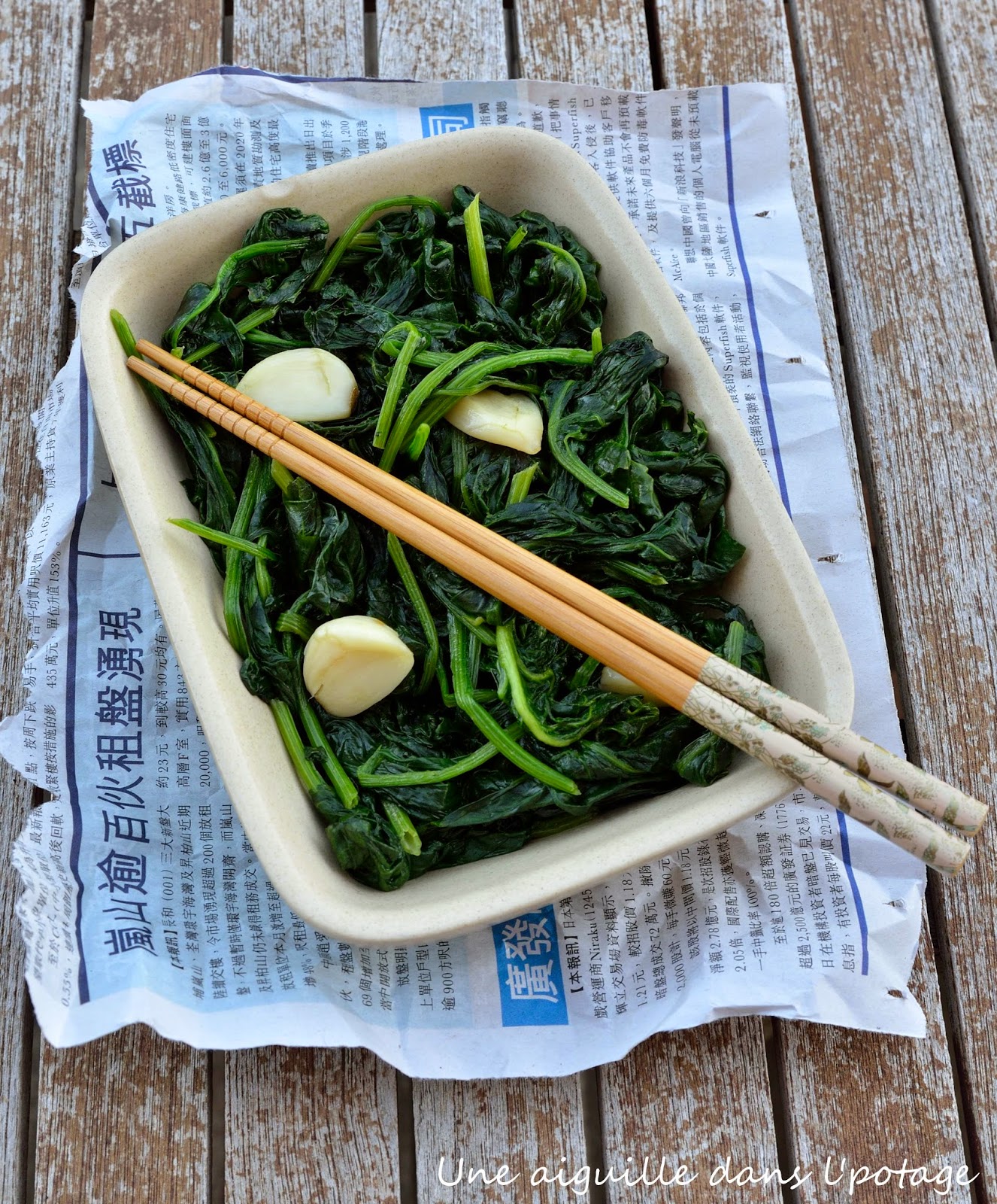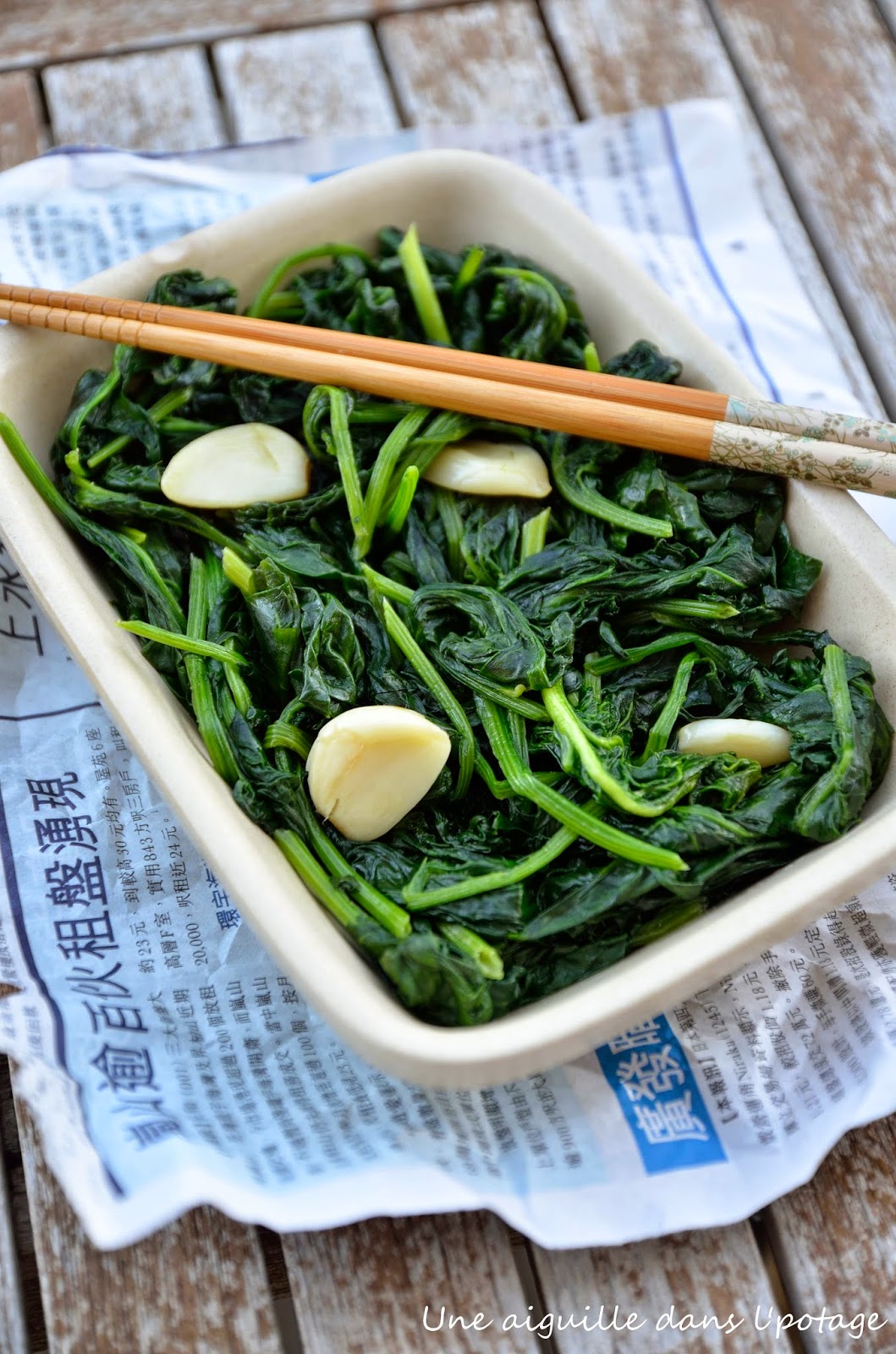Je vous propose encore une recette du chef chinois Ken Hom , idéale pour accompagner tout repas chinois. Ce plat d’épinard est moins savoureux que la précédente salade d’épinards épicée que je vous avais présentée il y a quelques temps, mais il faut bien varier les plaisirs !