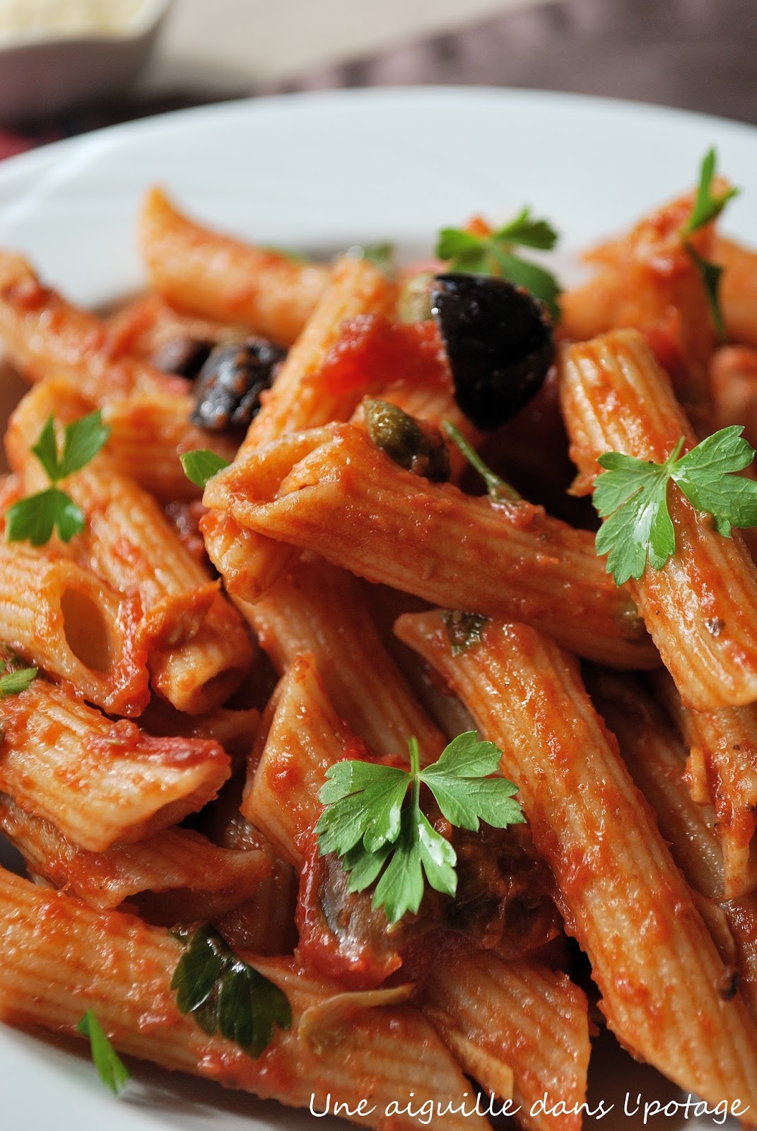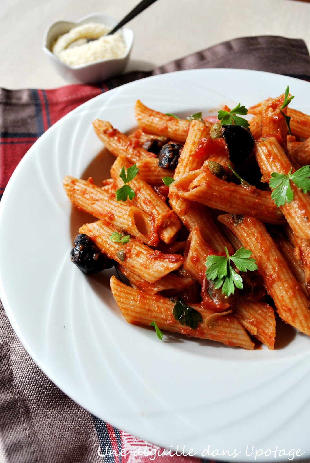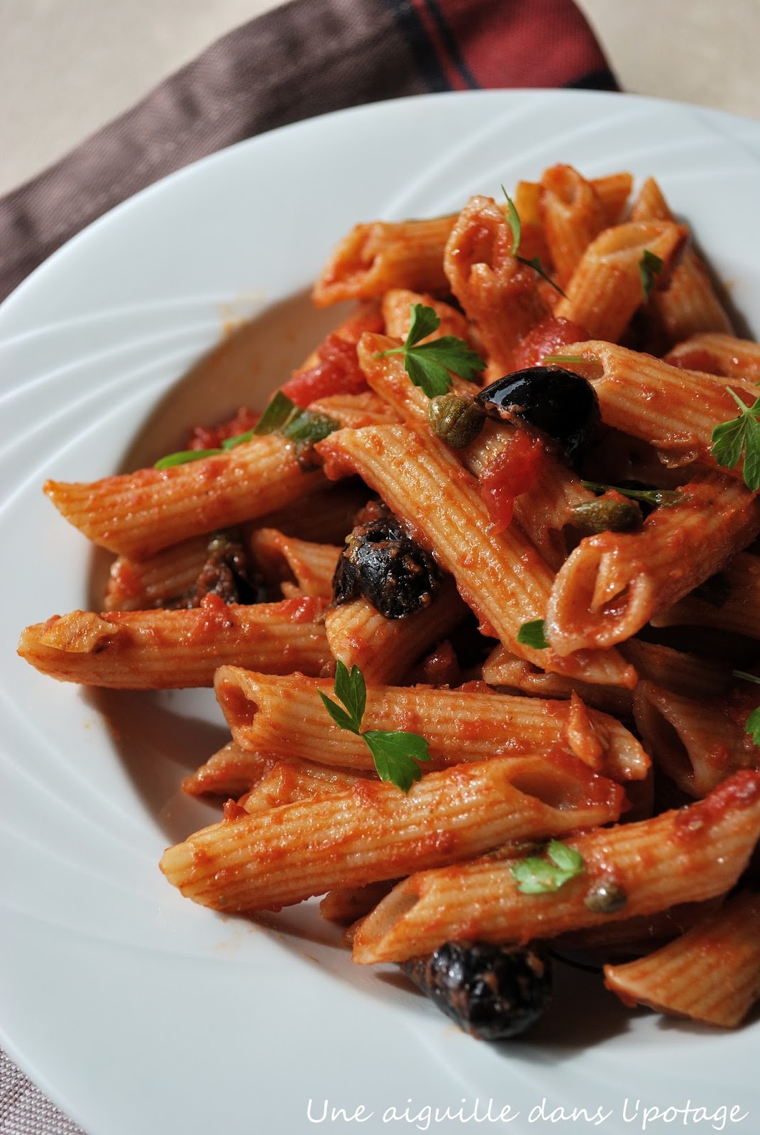 L’Italie s’invite dans ma cuisine avec le défi pâtes de « recette de » , défi pour lequel j’ai choisi cette recette napolitaine haute en couleurs et en saveurs : les pâtes alla puttanesca !