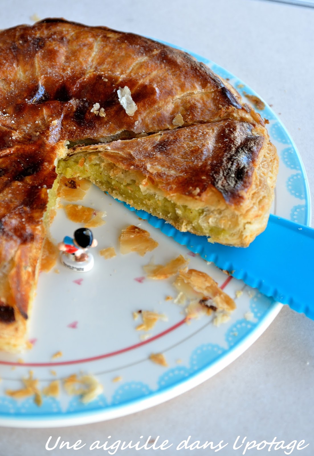 Au final, j’ai obtenu une galette avec un fourrage fondant, sans beurre (en dehors de la pâte feuilletée) et au parfum de pistache.