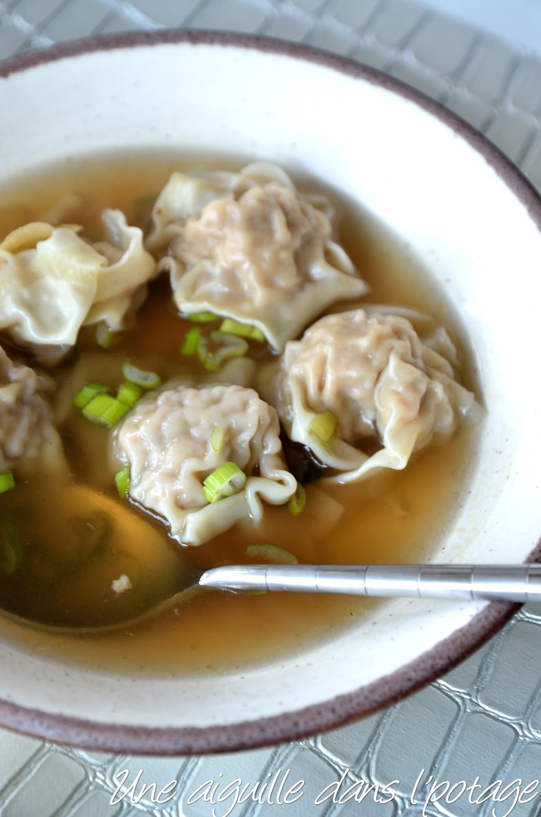 Avec le temps glagla qu'il y a dehors, je mangerais avec plaisir ta petite soupe aux raviolis wonton. ^^