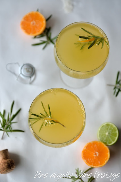 Humm un petit coktail qui doit être fort apprécié !! clémentine et romarin de bien bons parfums pour parfumé ce prosecco ! Je ne connais pas ce vin mais j'aime les vins italiens, donc je devrais aimer !! merci pour cette découverte et pour cette belle participation à Cuisinons de saison Lou ! gros bisous