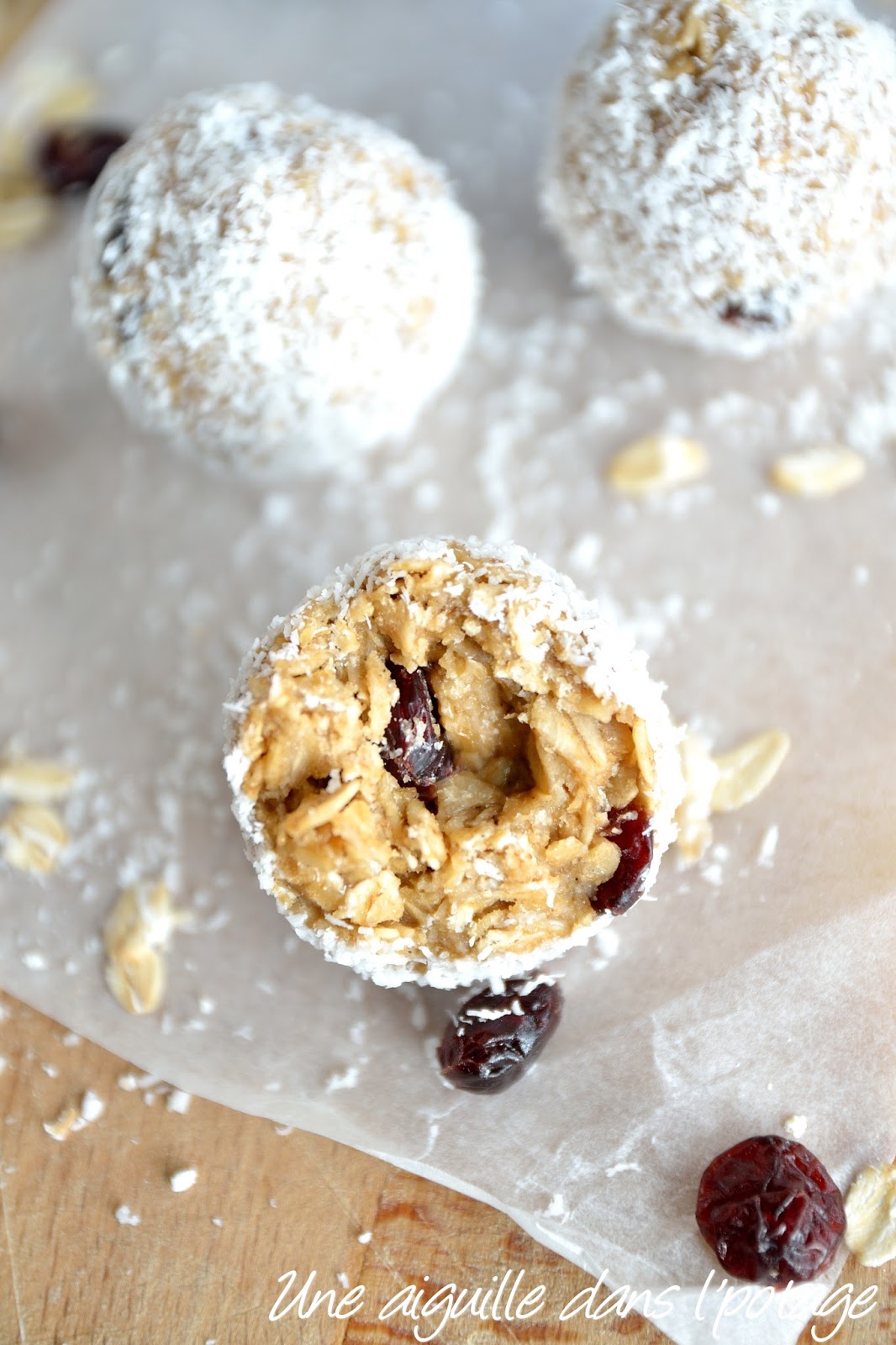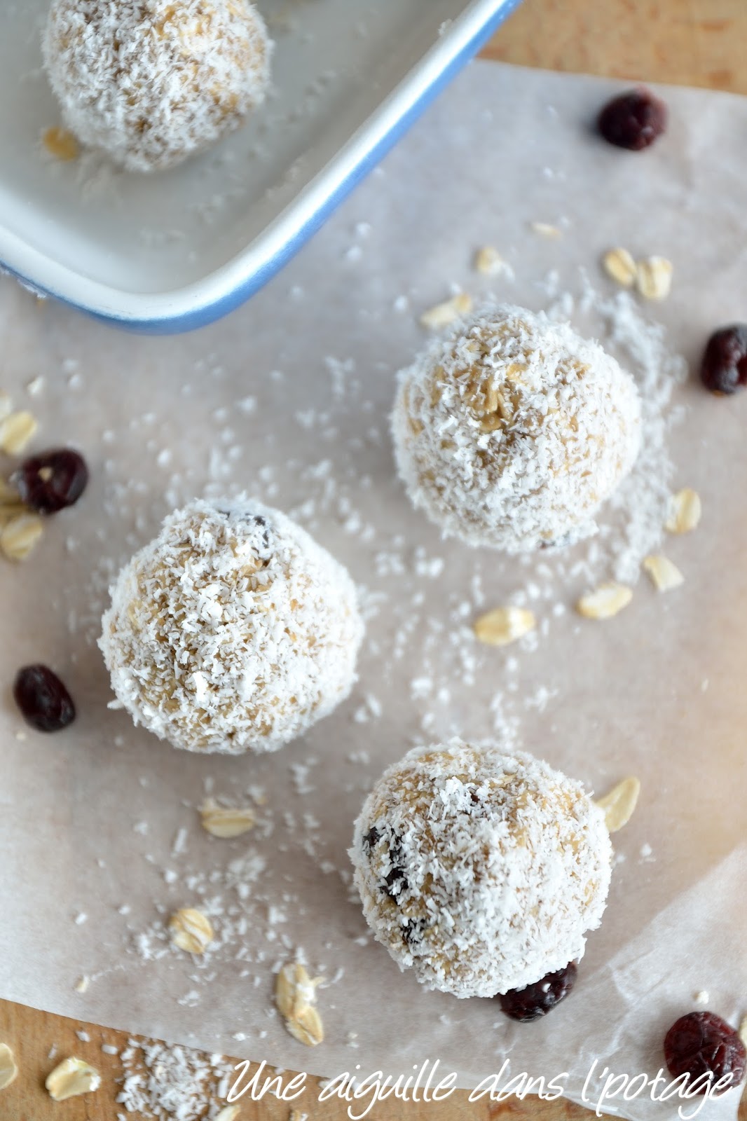 Pour une petite collation saine, avant un effort ou en cas de baisse de forme… ou pour satisfaire une envie de gourmandise, je vous propose ces petites bouchées de flocons d’avoine, aux cranberries et à la noix de coco.