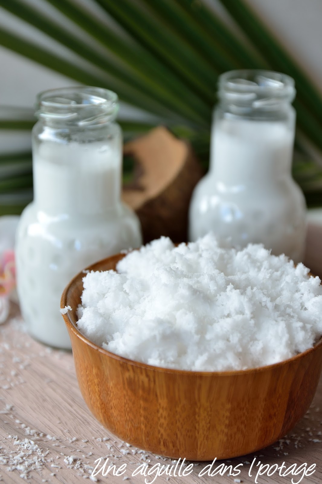 J’ai pris l’habitude de préparer moi-même mon lait de coco à partir de pulpe de noix de coco séchée, ce qui est bien plus économique et me permet de le doser pour un lait plus ou moins léger selon mes utilisations.