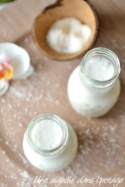 Moi aussi je suis dingue de noix de coco mais je n'ai pas le courage de preparer moi même mon lait… Mais ta petite me recette me tente bien et je pense que je vais quand même essayer!