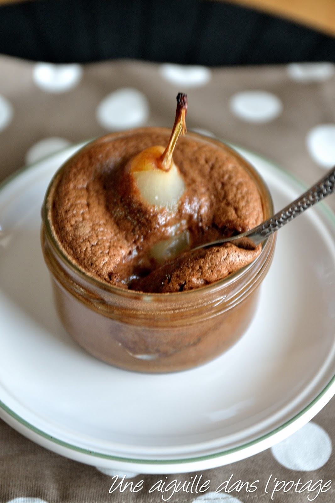 La présentation est magnifique ! Poire-chocolat, quel terrible duo irrésistible… Cette recette est en plus peu sucrée, inutile d'y résister ! J'arrive avec ma cuillère Lou 🙂