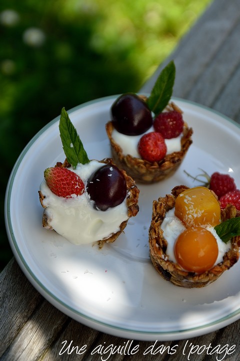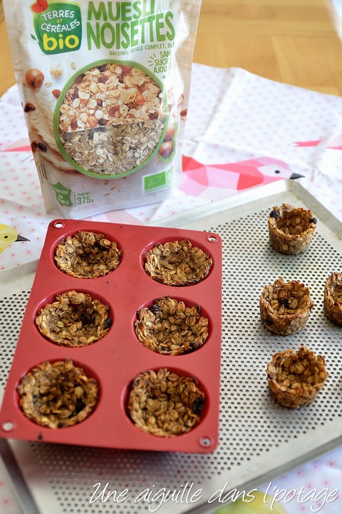 je suis carrément fan de tes mini coupes en muesli, l'idée est géniale ! je m'empresse de garder ta recette. merci pour ce beau partage original !
