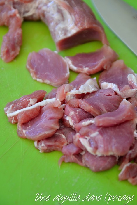 - 430 g de porc émincé en fines lamelles (filet mignon, échine …)