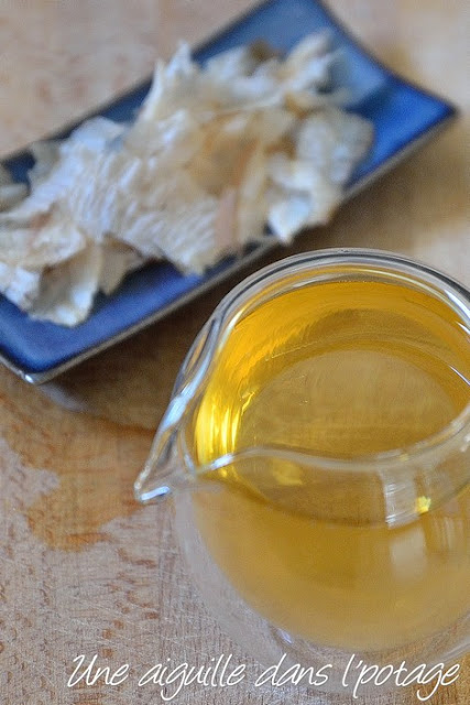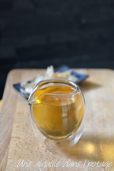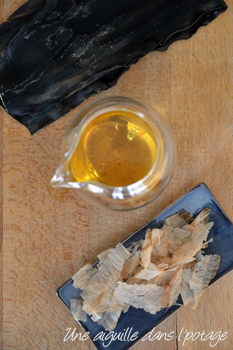 Je commence une petite série de recettes japonaises en débutant par un basique, le bouillon dashi. Il existe des bouillons de dashi en poudre instantanée à diluer dans l’eau, mais le dashi fait maison est toujours meilleur; il sert comme assaisonnement dans de nombreuses préparations comme la célèbre soupe miso.