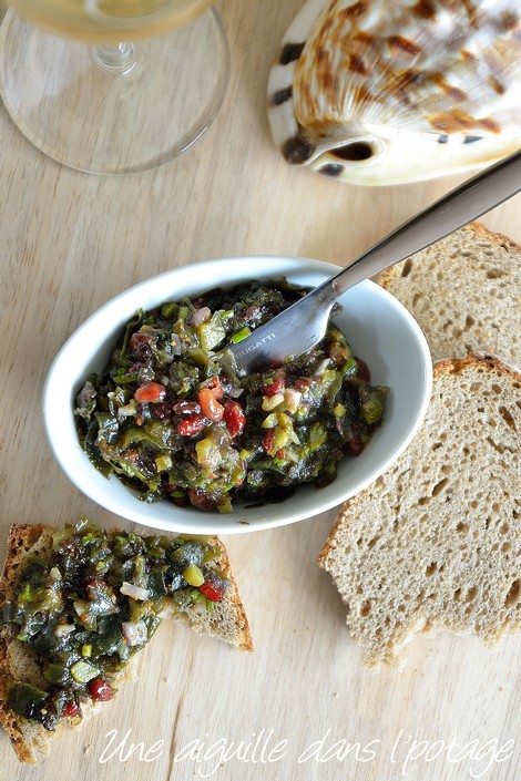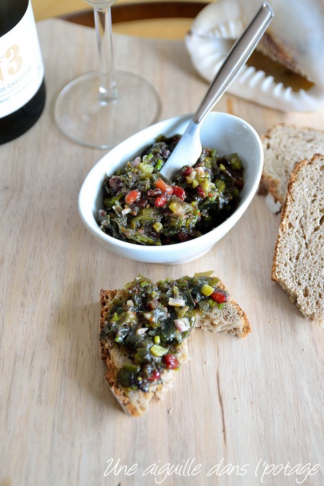 J’apprécie beaucoup les tartares d’algues à l’heure de l’apéritif, sur des toasts grillés, mais aussi dans des sandwichs, des salades de quinoa, pois chiches …