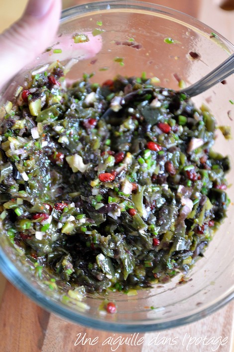 Pour ce tartare, j’ai mélangé du wakamé et la salade océane (laitue de mer (ou ulve), de la dulse et de l’algue nori) de chez Bord à Bord (Roscoff).