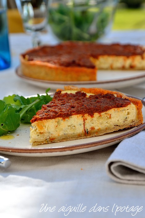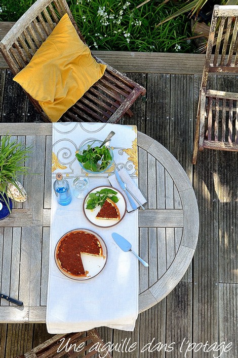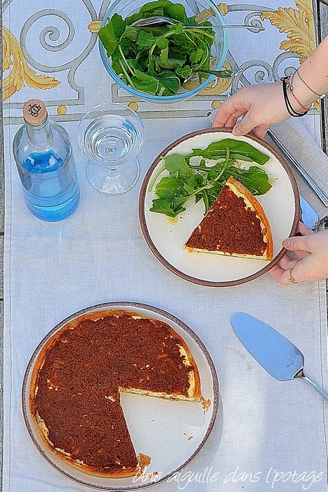 Eh bien c'est fait, j'ai testé la recette ce matin et ce midi nous nous sommes régalés avec cette délicieuse tarte, encore tiède !! Ce soir elle sera servie froide avec une bonne salade verte…et je l'imagine encore meilleure, les différentes saveurs s'étant mêlées les unes aux autres !!